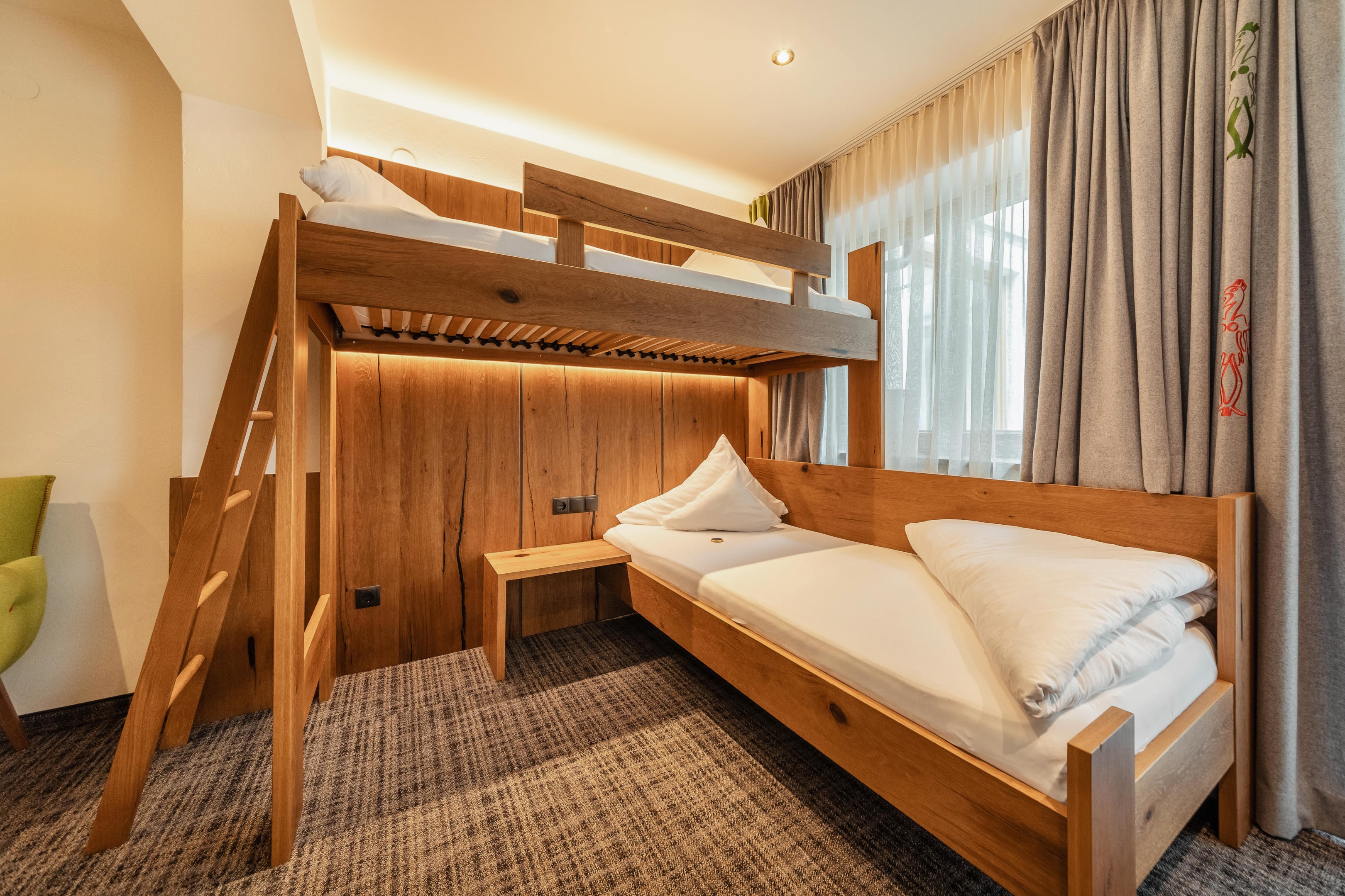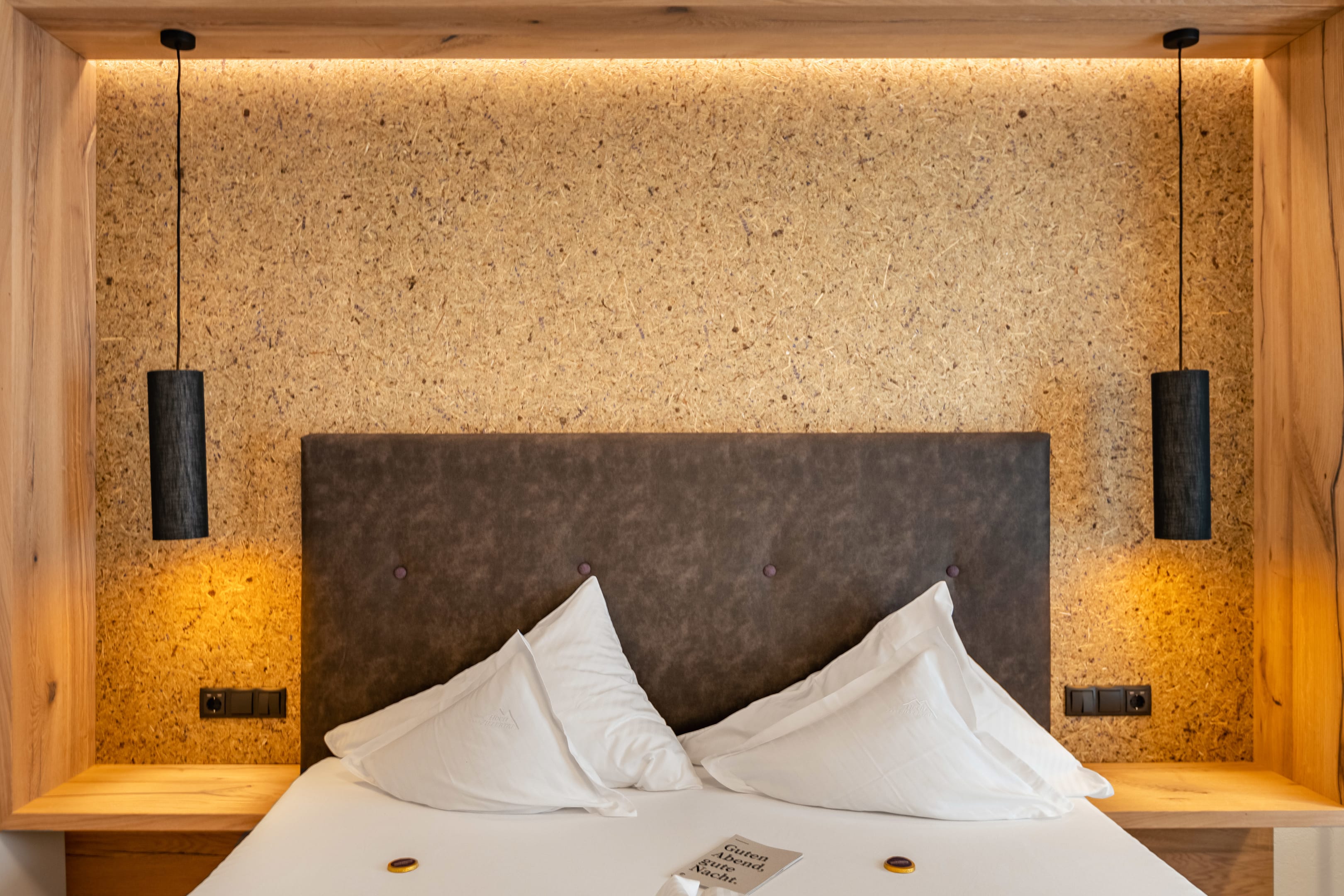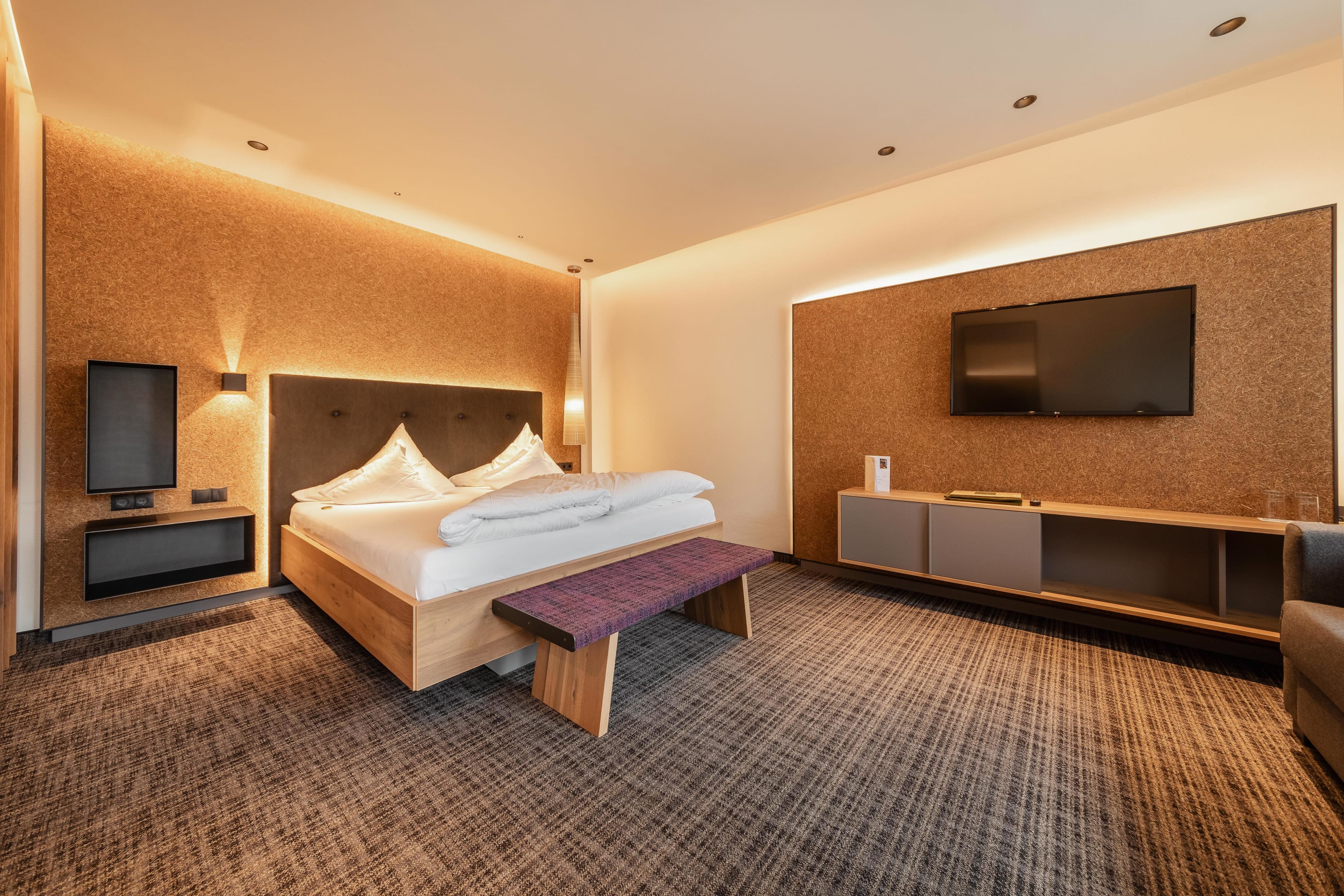 Whatever the room type you choose: all of our rooms are supplied with revitalised Grander spring water. Soothing METZLER Molke skincare products from Vorarlberg are also provided. During your stay, you can enjoy revitalised Grander spring water throughout the hotel and pamper your skin with our skincare products. And to guarantee a relaxing night’s sleep, we offer a wide range of different pillows for a peaceful night’s rest in the form of our herb pillow menu. In our new herb rooms, beds containing panels of pressed grasses and herbs from Tyrol give the room a special feel and aroma.